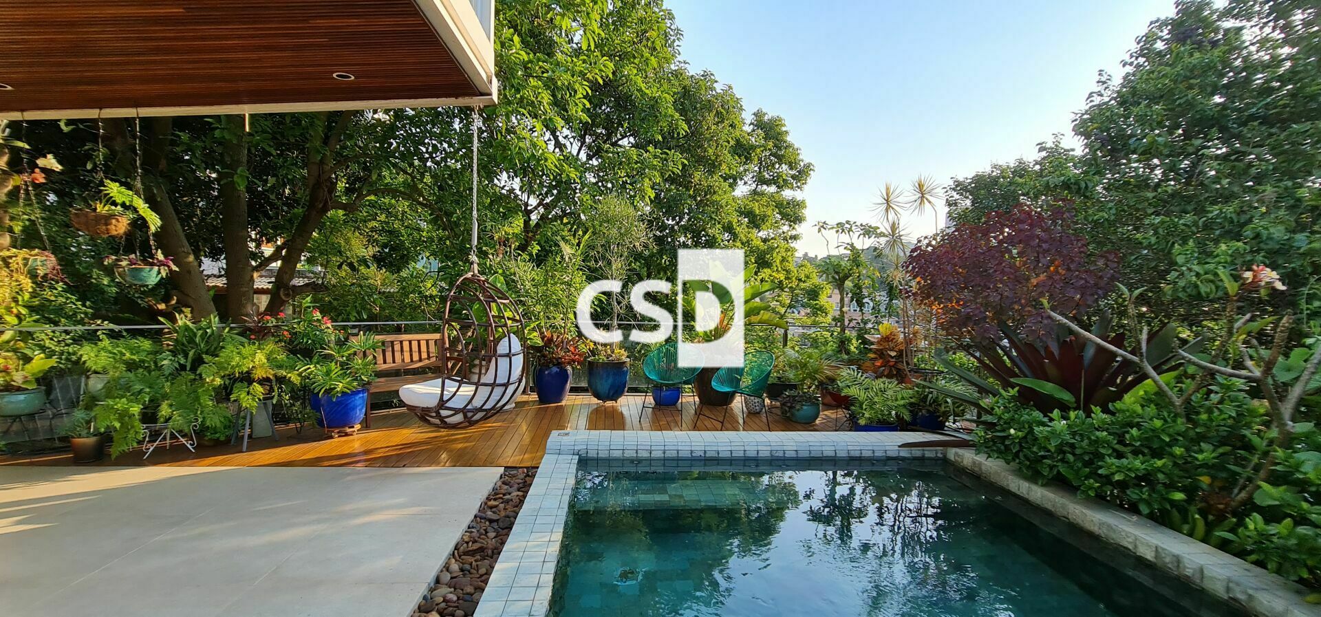 Piso água: Hall entrada, living, jantar, cozinha, Piscina